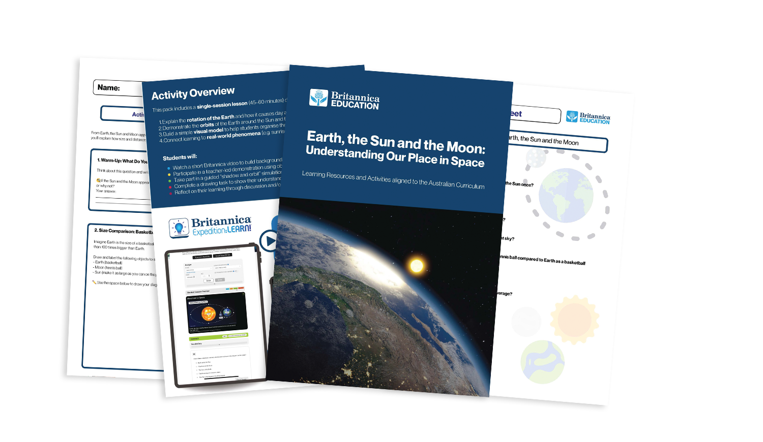Help young learners understand our place in space. Download your free activity pack to introduce students to Earth’s rotation, orbit, and the Moon’s role in our solar system.