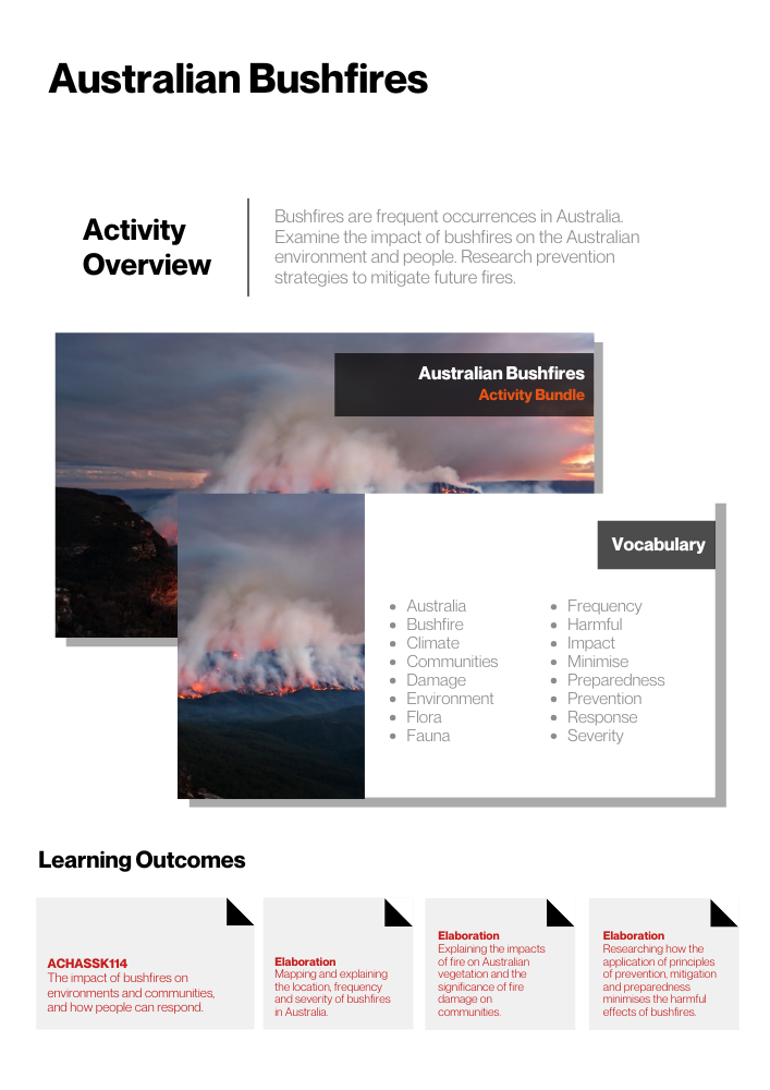 Learn about the management of Australian environments, including managing severe weather events such as bushfires, floods, droughts or cyclones, and their consequences (AC9HS5K05).