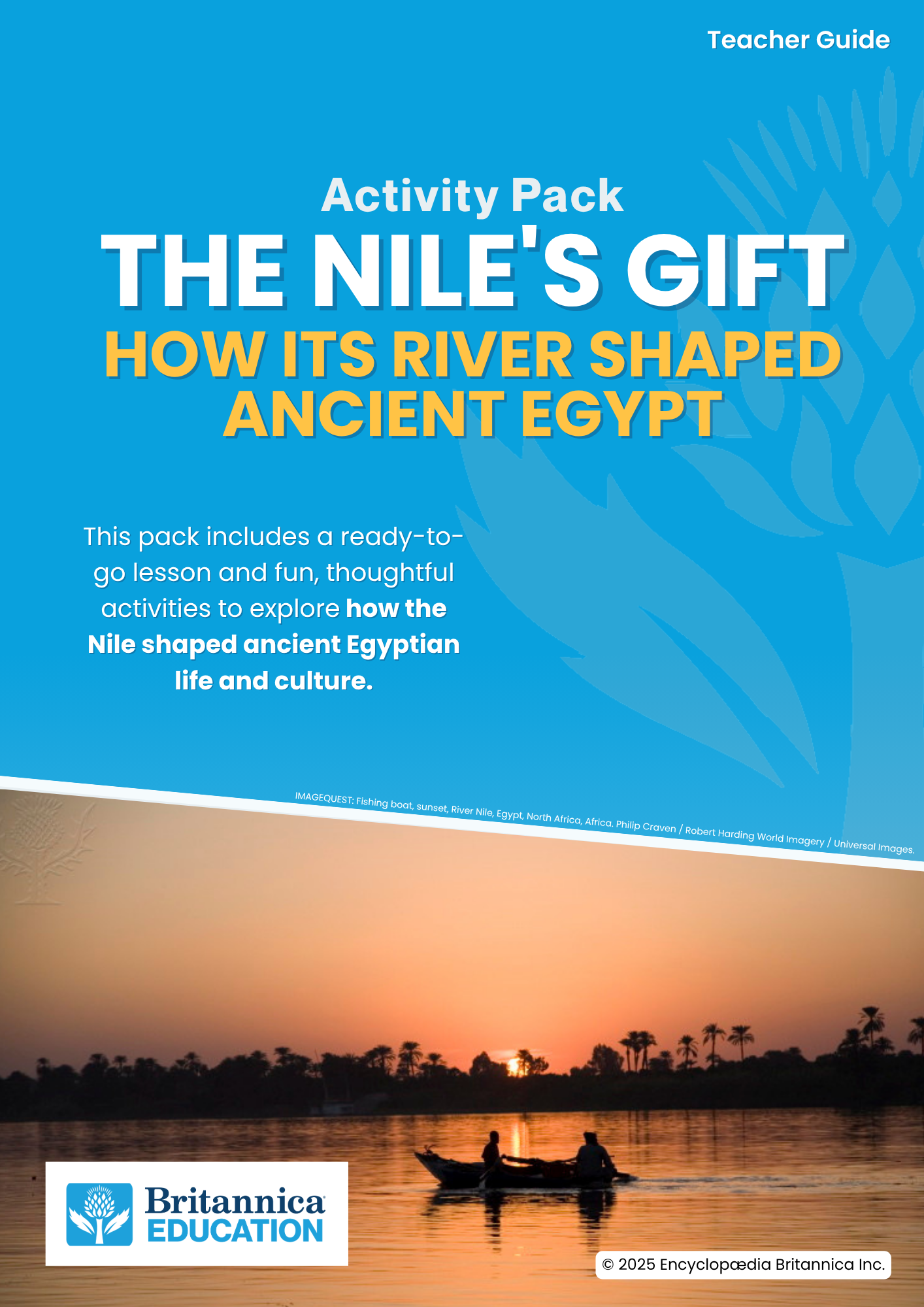 The lesson helps students explore how the Nile River shaped ancient Egyptian life and culture, developing critical thinking skills through the use of ASK Britannica as their AI research tool.