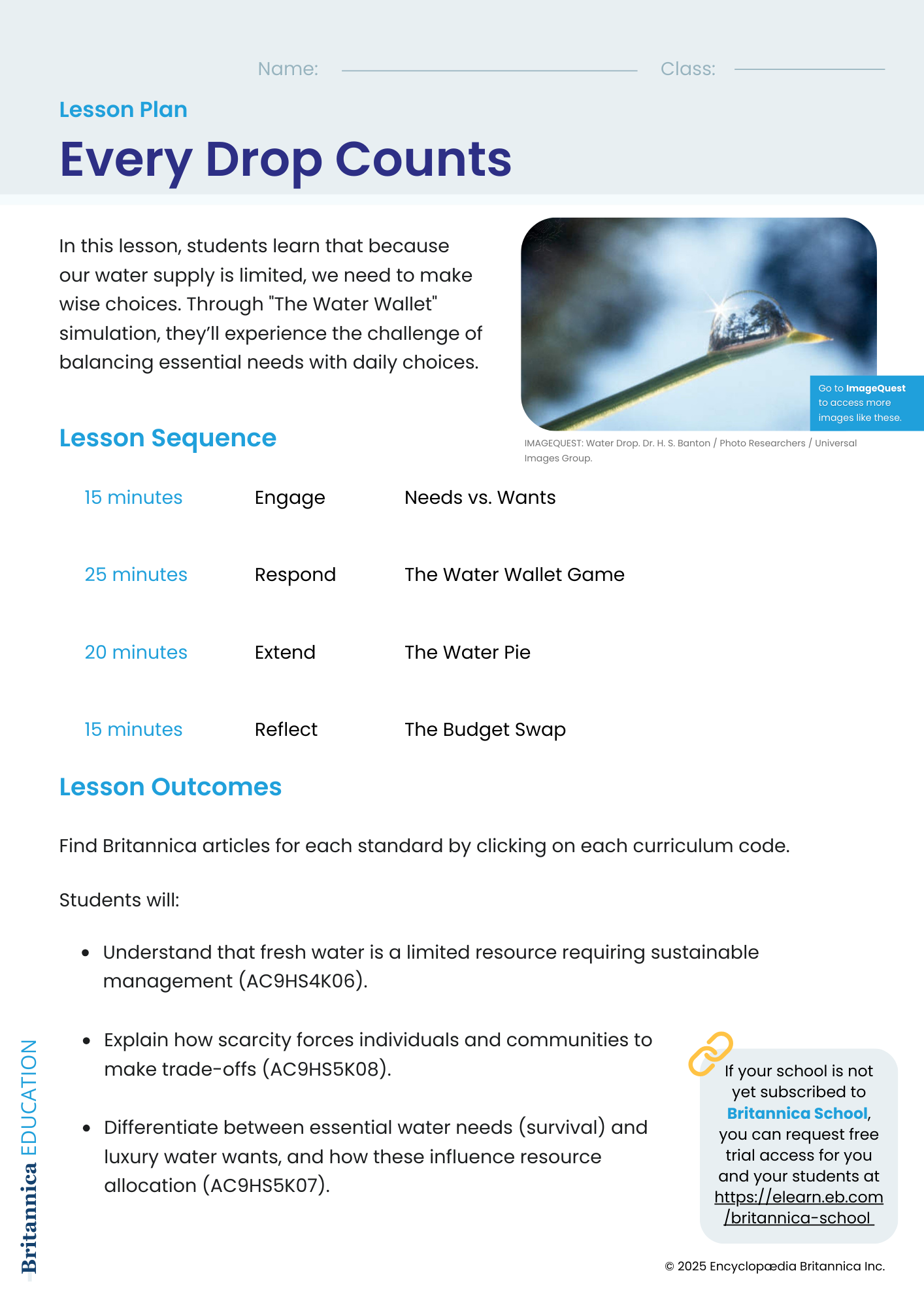 In this lesson, students learn that because our water supply is limited, we need to make wise choices. Through “The Water Wallet” simulation, they’ll experience the challenge of balancing essential needs with daily choices.